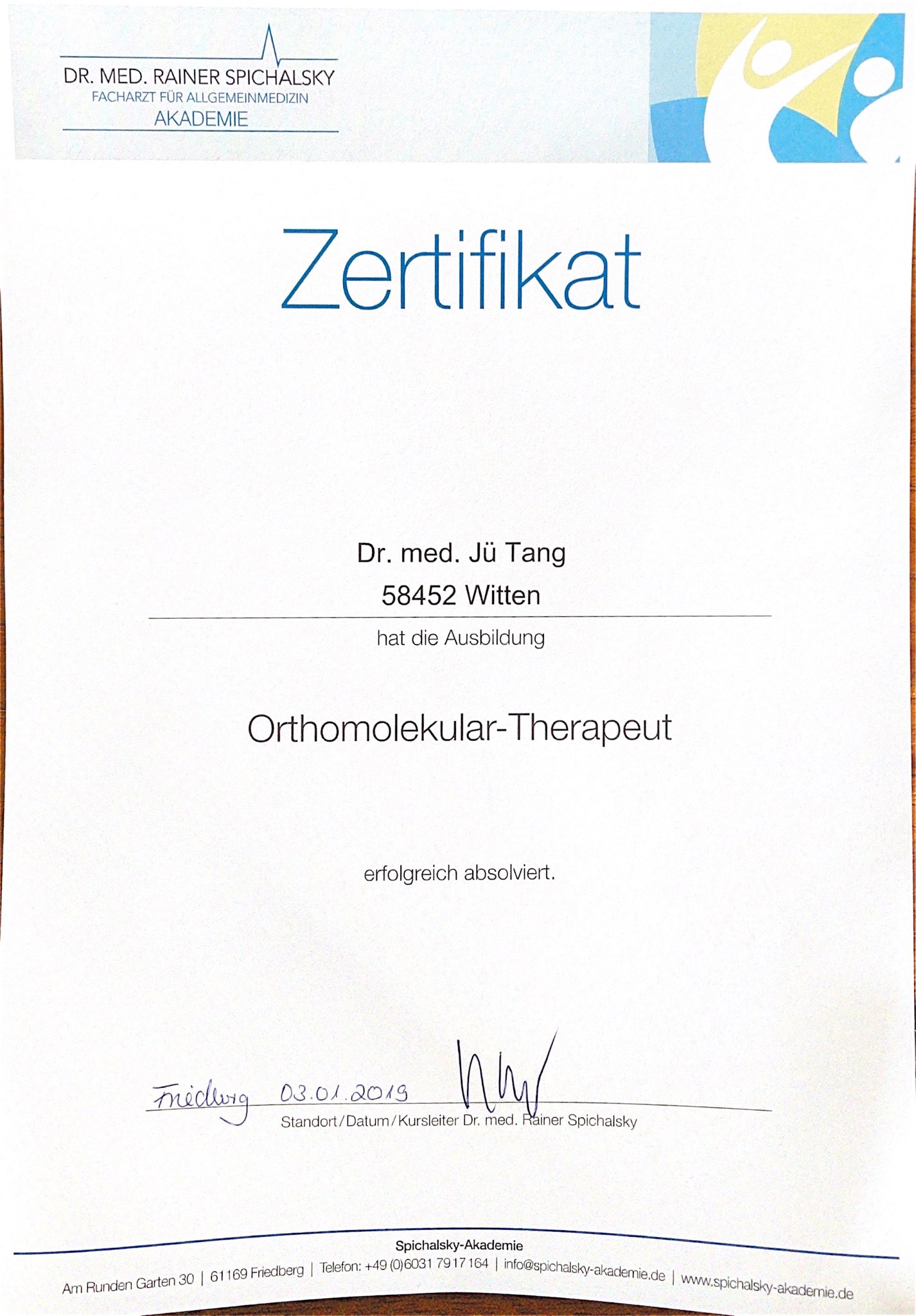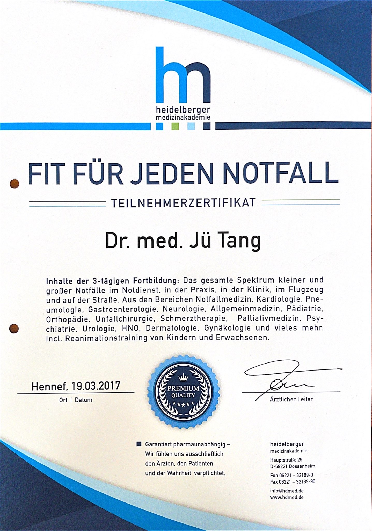 Frau Dr. med. Jü Tang stammt aus einer Mediziner-Familie, deren Tradition in TCM in China schon seit mehreren Generationen besteht. Nach dem Studium der Traditionellen Chinesischen Medizin in China hat sie dort mehrere Jahre in einem staatlichen Krankenhaus gearbeitet. Ihr zweites Studium der Humanmedizin absolvierte sie an der Universität Witten/Herdecke mit anschließender Promotion an der Universität Zürich.
